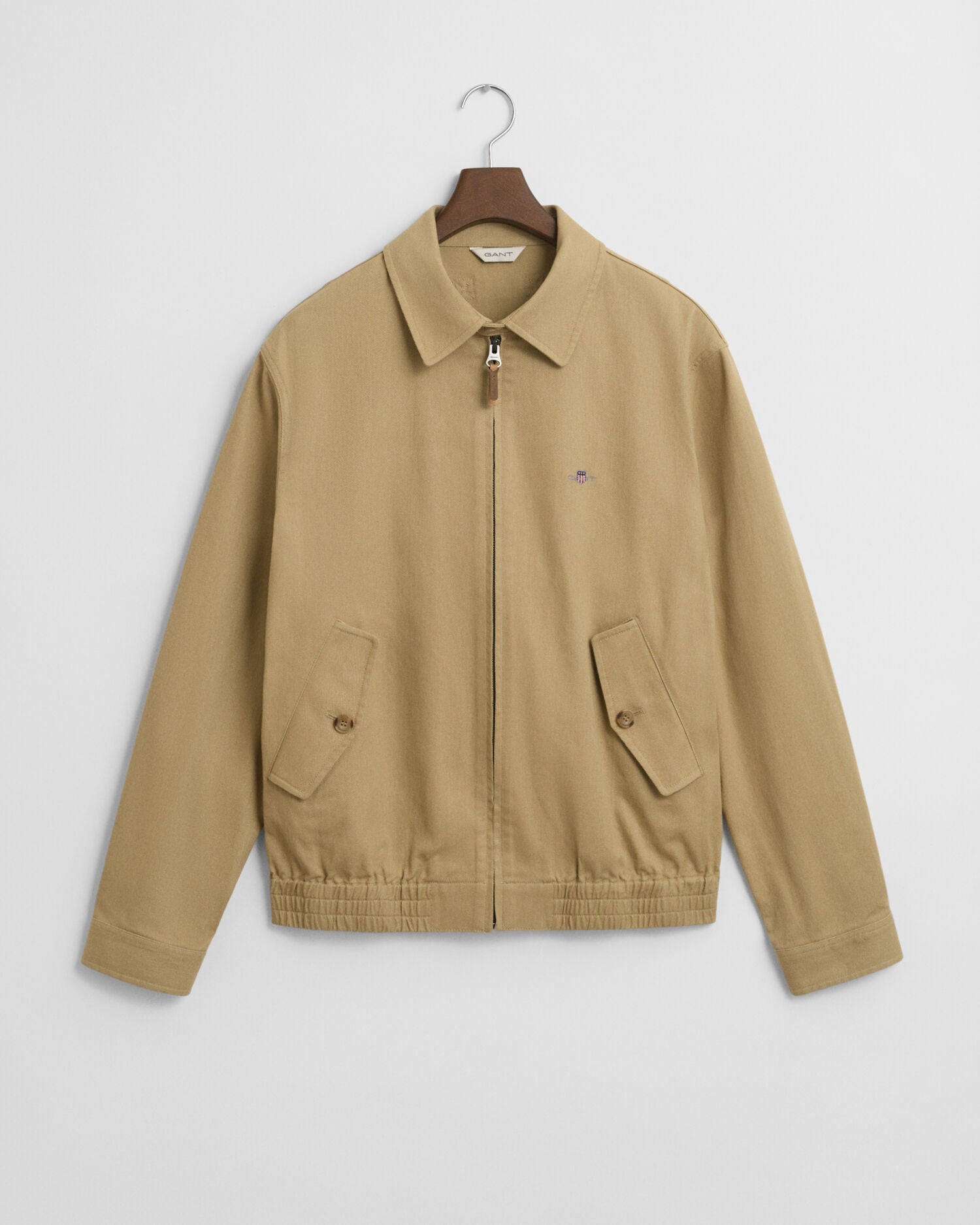 Crafted from twill made of cotton, this jacket is inspired by classic workwear with a modern touch. Cut for a regular fit, it sits above the hips and has an unlined interior for a more casual, breathable feel. It is detailed with side flap pockets, buttoned cuffs, an elasticated hem and a zip closure at the front. at the front and one interior chest pocket with visible stitching from the outside. Finally, it is branded with our iconic shield logo embroidered at the chest.