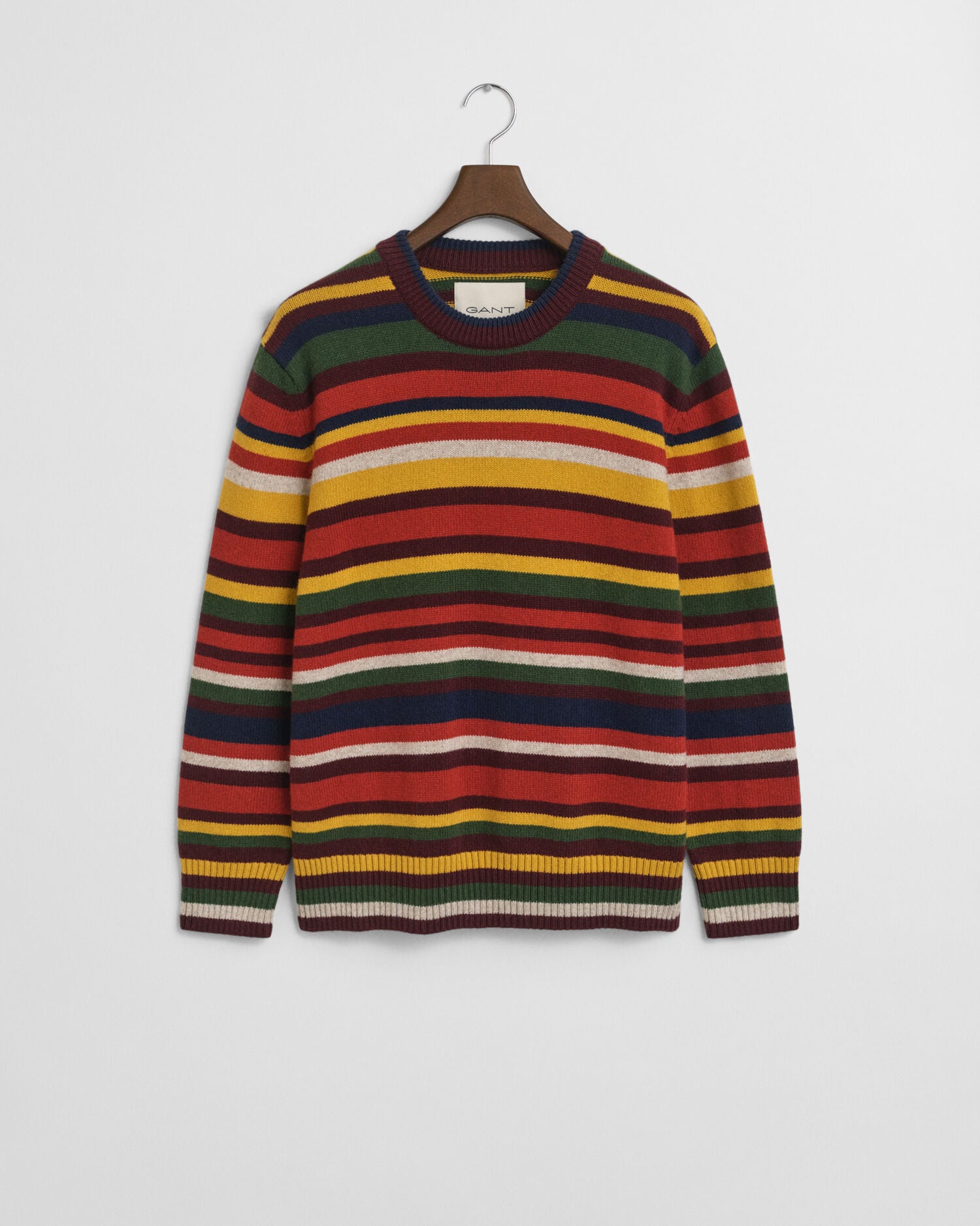 The perfect sweater for your everyday wardrobe, this crew neck design features a relaxed fit and an all-over multicolor striped design. It is crafted from a soft cotton-wool blend and detailed with ribbing at the neck, hem and sleeve cuffs. This garment is intended for a relaxed fit. For a closer fit, we recommend sizing down.