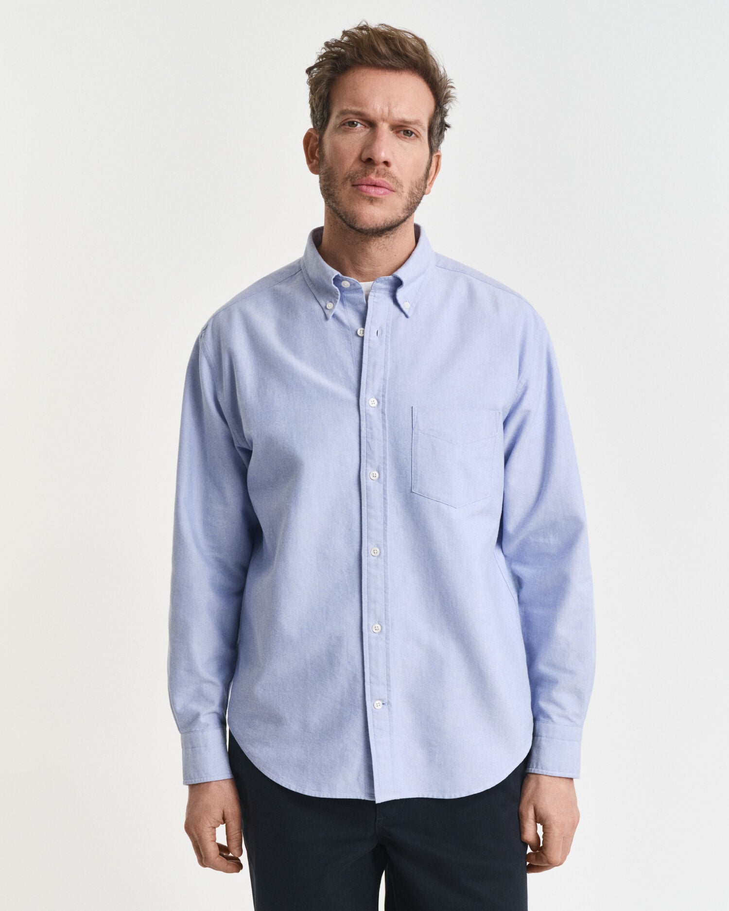 Crafted from 100% organic cotton, this premium shirt has a soft and slightly heavier weight hand-feel for an authentically heritage Oxford style. Cut for a relaxed fit, it is constructed with a classic button-down collar, chest pocket, curved hem and adjustable cuffs. This shirt is detailed with mother-of-pearl buttons and a box pleat with our signature locker loop at the back. This garment is intended for a relaxed fit. For a closer fit, we recommend sizing down.
